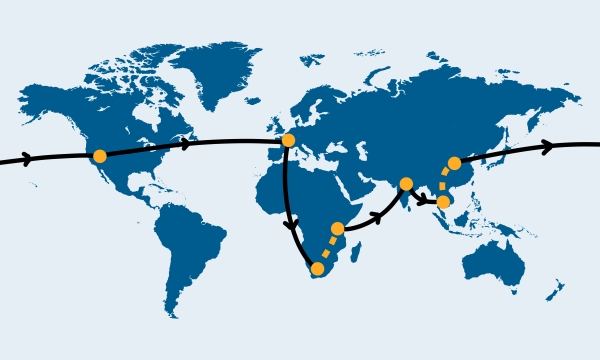 Itinéraire : AfriqueAlaskaAmérique centraleAsie centraleAsie du SudAsie du Sud-Est